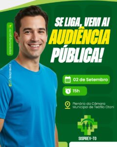 Audiência Pública 13 de agosto de 2025 📢 O SISPREV quer ouvir você! Participe da Audiência Pública e acompanhe de perto as ações e resultados da nossa gestão. 🗓 02 de setembro 🕒 15h 📍 Plenário da Câmara Municipal de Teófilo Otoni
